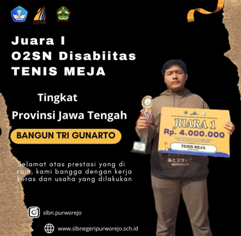 Beberapa prestasi siswa SLB Negeri Purworejo dalam aneka perlombaan baik di tingkat Kecamatan, Kabupaten, Propinsi dan Nasional